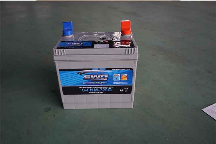 型号 电压(V) 冷启动电流(A)(-18℃) 额定外形尺寸(MM) L M H 6-FNM-550G 12V 550 215 176 276 6-FNM-670G 670 260 176 276 6-FNM-720G 720 6-FNM-830G 830 335 176 268 6-FNM-930G 930【产品特点】1.体积小、功率大(是普通铅酸蓄电池的1.5倍)2.寿命长(是普通铅酸蓄电池的1倍)3.失水率低、无需加液,全密封设计 ,无电解液溢漏,极低的放电率(存放时间是普通电池的3倍)。4.无酸液泄漏,没有与酸接触爆炸的机会,外观精美等特点。5、产品广泛应用于柴油发电机组、风力发电机等领域。【使用方法】1、在配租安装时,正负极性一定要连接准确,并保证端子与接线卡子连接牢固,不准有虚连现象,复连时电池技术参数要一致。2、连接线必须采用能通过合适电流的电缆软连接线,软电缆长度合适,以免短路不安全可能性或影响起动效果。3、安装方式为敞开式,电池间留有间距,使电池氧化循环过程中的热量能迅速散失。【充电方法】充电时,蓄电池正、负极分别与充电器的正、负极相对应连接。充电过程中,电解液温度不得超过48℃,否则应采取减小电流,增加通风等降温措施。充电方式:采用恒流或限压方法进行充电。1、恒流充电要求:设定(恒流)电流为:(1)6-FNM-550G电池以6.5A充电至14.4V后,再用3A电流继续充电电池电压保持3小时稳定;(环境温度在25℃)(2)6-FNM-670G电池以7.0A充电至14.4V后,再用3.5A电流继续充电电池电压保持3小时稳定;(环境温度在25℃)(3)6-FNM-720G电池以8A充电至14.4V后,再用4.0A电流继续充电电池电压保持3小时稳定;(环境温度在25℃)(4)6-FNM-830G电池以10.2A充电至14.4V后,再用5.1A电流继续充电电池电压保持3小时稳定;(环境温度在25℃)(5)6-FNM-930G电池以11.4A充电至14.4V后,再用5.7A电流继续充电电池电压保持3小时稳定;(环境温度在25℃)。2、恒压充电要求:蓄电池以16.00V电压充电24小时,额定电流限制到:6-FNM-550G电池16.5A;6-FNM-670G电池额定电流限制到17.5A;6-FNM-720G电池额定电流限制到19.5A;6-FNM-830G电池额定电流限制到25.5A;6-FNM-930G电池额定电流限制到28.5A(环境温度在25℃)。3、蓄电池的放电:4、安装使用时应注意蓄电池端子的正、负极分别与接线夹头的正、负极相对应,以免在使用时损坏相关电器元件。为防止蓄电池内部极板硫酸盐化而缩短使用寿命,蓄电池在使用过程中严禁过度放电。如有下列情况之一者,应以第1条进行恒流充电:(1)电解液密度降到1.250g/cm3以下;(2)电池大电流放电启动无力;5、蓄电池的充电:充电时蓄电池正、负极分别与充电器的正负极相对应连接。充电过程中,电解液温度不得超过48℃,否则应采取减少电流,增加通风等降温措施。【注意事项】1、电池均为100%荷电出厂,必须小心操作,忌短路。按规定串联、复联或并联线路,连接列间、层间、面板端子的电池电线。在安装末端连接件和整个电源系统导通前,应认真检查正、负极性及测量系统的电压。电缆引出线尽量可能短,且应有足够的截面积,以达到减小大电流压降。2、由于电池组和电压高,应使用绝缘工具、带好绝缘手套,保证设备和人身安全。3、电池存放可在0—50℃的环境温度下存放,但储存期限6个月。若超过储存时间,通过充电设备补足充电,在串联电路中设定电压16.2V/只(25℃)可恢复使用。4、可用肥皂水浸湿软布清洁电池壳和盖,不能用有机溶液清洗,以免腐蚀电池盖和其他部件。5、电池组在投入供电前,最好履行一次补足充电和放电循环,已提高电池初放容量。6、应保持完整的蓄电池安装履历的记录,尤其是异常情况下的资料,可作为投产后的维护措施改进的依据。【维护和保养及其他事项】1、蓄电池应贮存在清洁、干燥、通风良好的库房内,库房温度保持在5—40℃范围内为宜,否则会直接影响蓄电池贮存后的性能。2、蓄电池应避免阳光直射,离热源2m以上,避免与任何液体、金属等有害物质接触。3、蓄电池不得倒置、卧放,不得受机械冲撞、重压或雨淋。4、蓄电池应经常保持荷电饱满状态,过量放电或放电后久不充电均会影响系电池寿命。对使用过的蓄电池,应充足电后予以贮存,并定期补充电。5、电液状态显示:(1)从显示器的顶面往下垂直看圆中心,无色圆中心以外红色显示效果为液面偏低。(2)从显示器的顶面往下垂直看园中心,红色圆中心以外无色显示效果为充电不足。(3)从显示器的顶面往下垂直看圆中心,红色圆中心以外绿色显示效果为充电良好。产品型号:6-FNM-720G 可替代N135AH(发电机组、工程机械、农业机械起动用)适用机组:适用于潍柴120-150KW、东康150-电机组玉柴120-150KW、上柴150KW以下发电机组